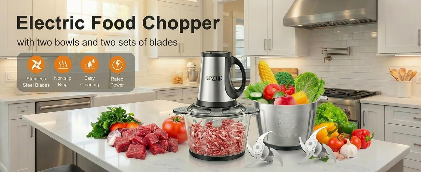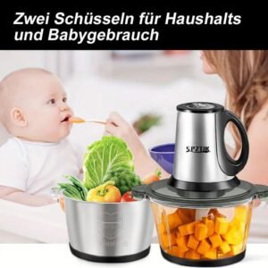 58 reviews for SPZTJK Multifunktionaler Elektrischer Schneidroboter aus, Fleischhacker für den Hausgebrauch, Zerkleinerer Elektrisch,zwei Schüsseln(Edelstahls & Glass)und klingen,zum Zerkleinern und Hacken geeignet, Ideal für Gemüse, Knoblauch, Salat, Babynahrung