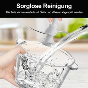 Einfache Zubereitung: Sparend Zeit mit schnellem Zerkleinern, Mixen und Pürieren per Knopfdruck. Abnehmbare Klingen für einfache Reinigung.